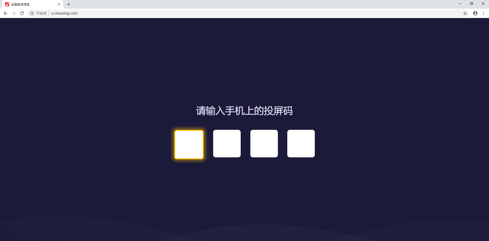 电脑端,打开浏览器(除了IE浏览器),输入网址x.chaoxing.com,然后输入手机上显示的投屏码,即可开启投屏。
