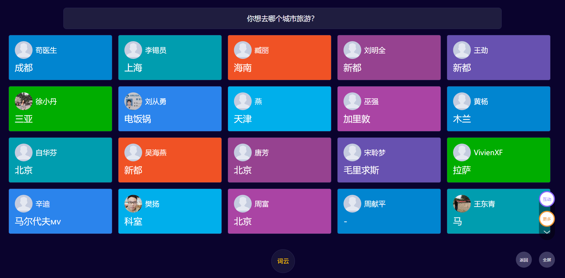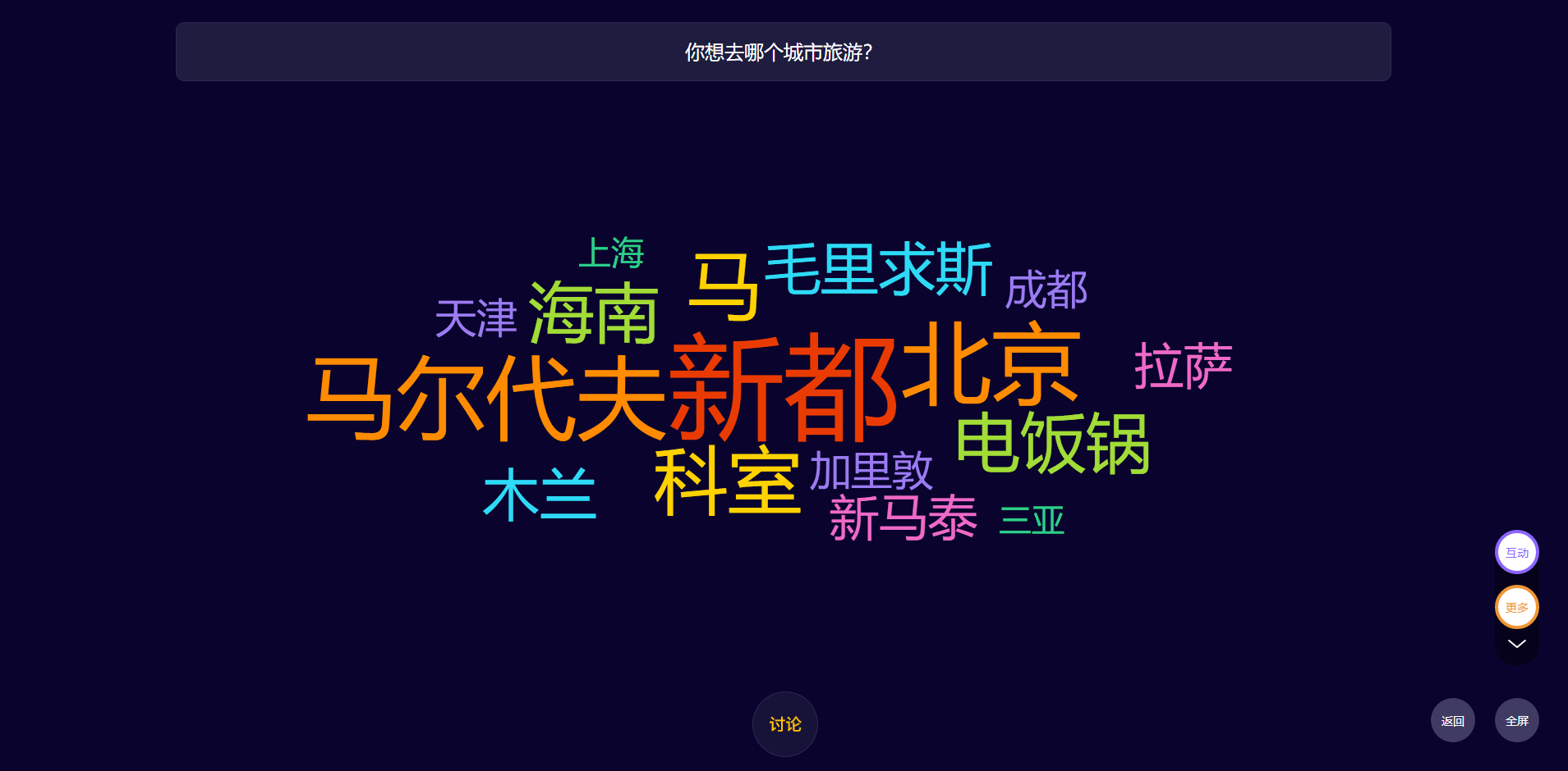 在电脑页面下方或手机上点击“词云”,即可进行词云展示: