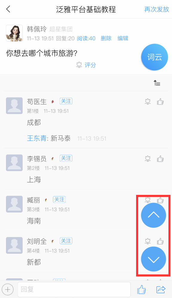 2.发布活动后,右下角的上下箭头,可控制电脑投屏页面,上下滚动。