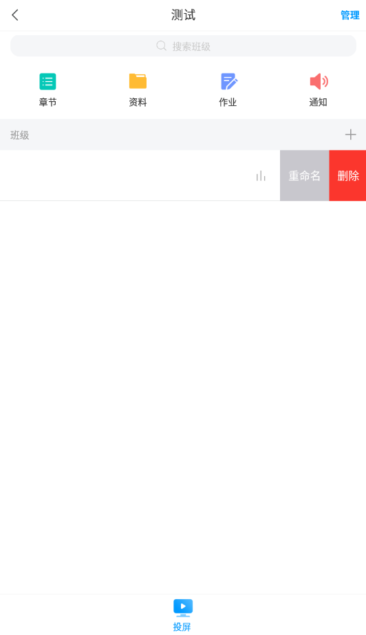 3.班级“重命名”、“删除”:回到课程列表,在某班级上,进行左滑。