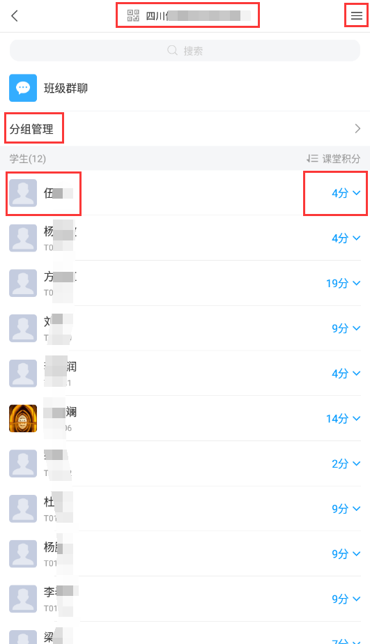 ·右上角三根横线处,可进行添加学生,并将班级学生分组、班级设置-开启浏览模式、查看班级活动报告。