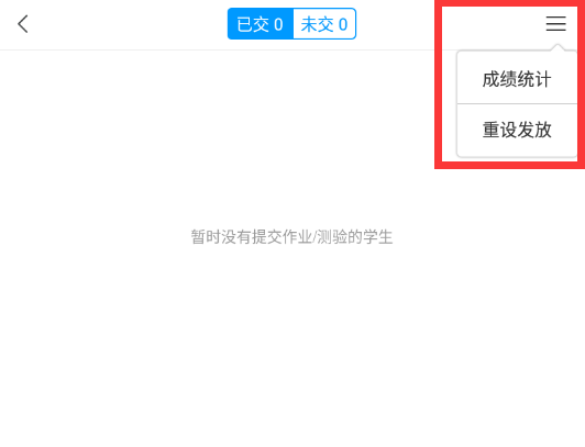 4.学生完成作业后,即可进入“已发放”中找到该作业,点击进入,批阅。进入批阅,可以查看已交/未交人员名单,右上角三根横线处,可以查看成绩统计,重新发放作业。