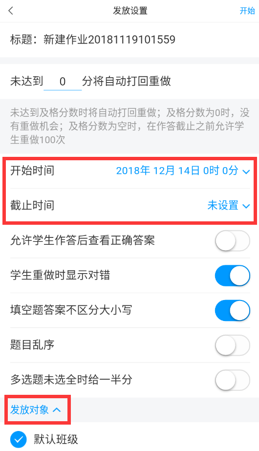 3.创建完成的作业将显示在作业库中,点击发布进行发布设置,选择发放的班级,设置完成点击发放。