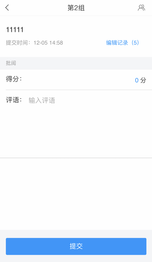 6.点击“批阅”,进行打分、写评语,右上角人员图标进去,亦可进行积分设置。