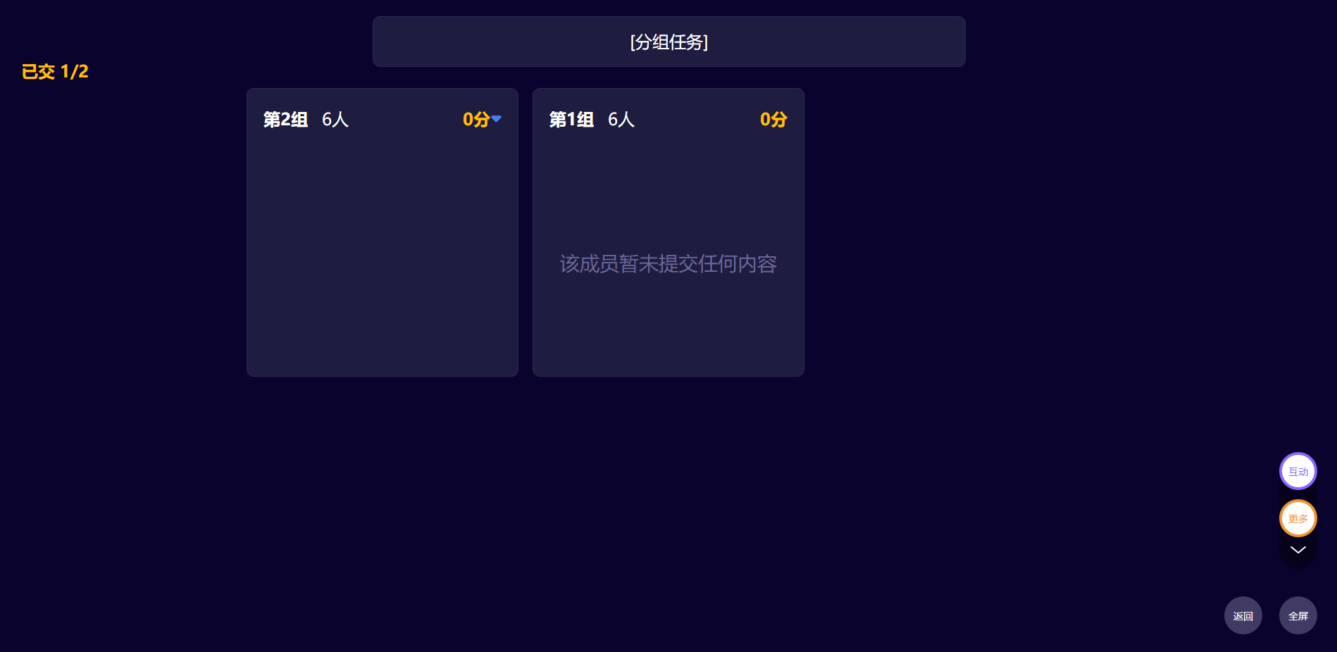 手机上点击“批阅”,即可在大屏上显示某组提交的任务内容详情: