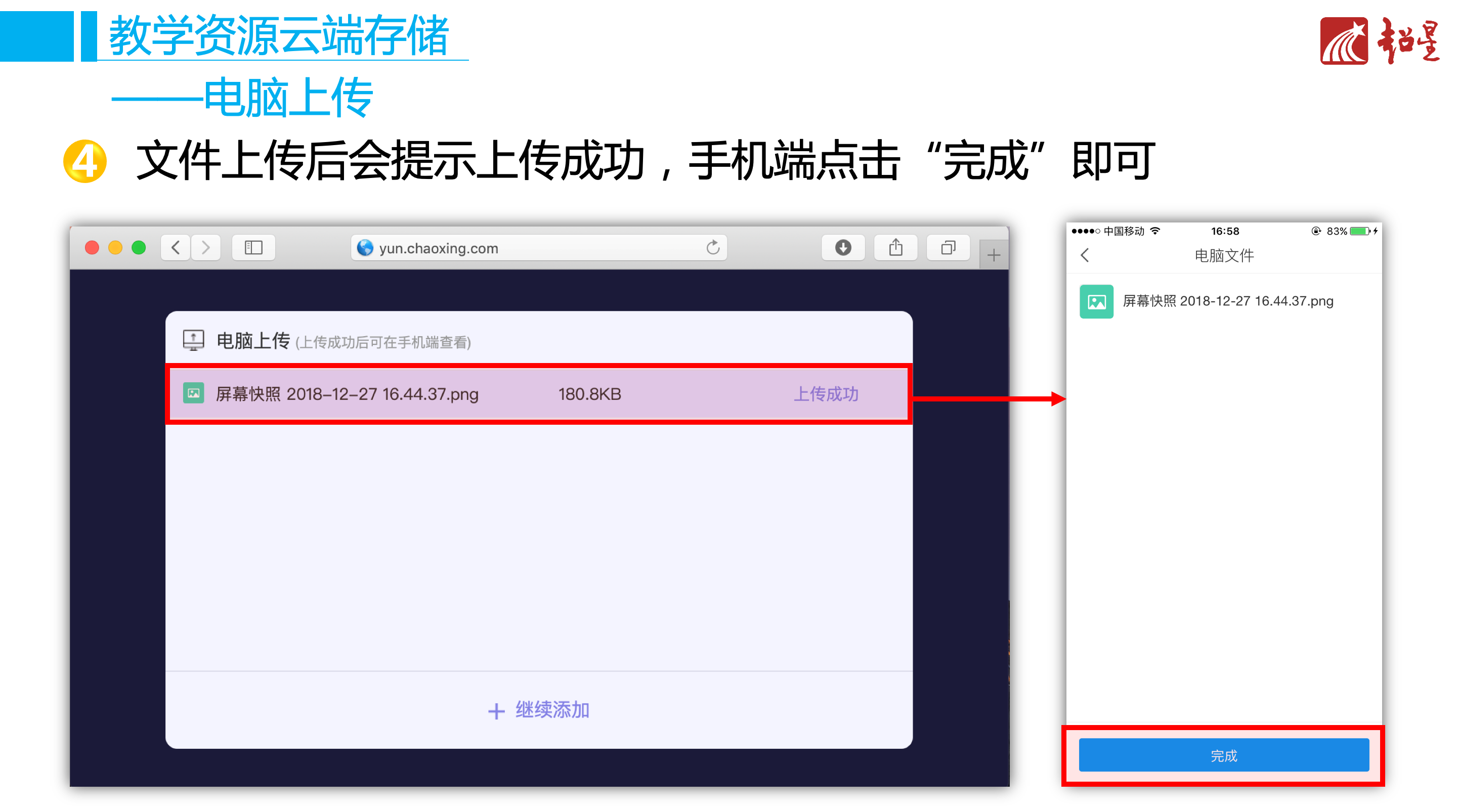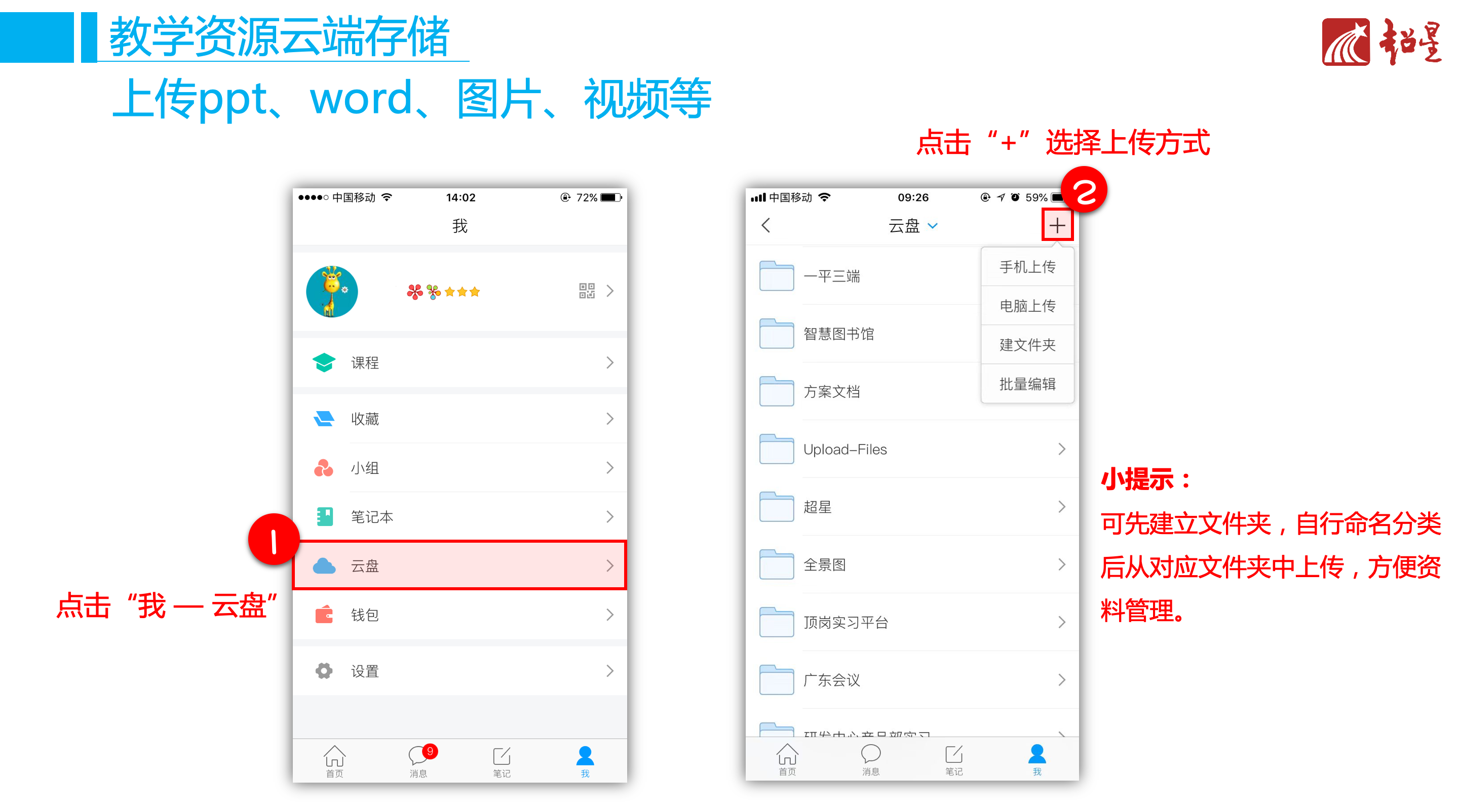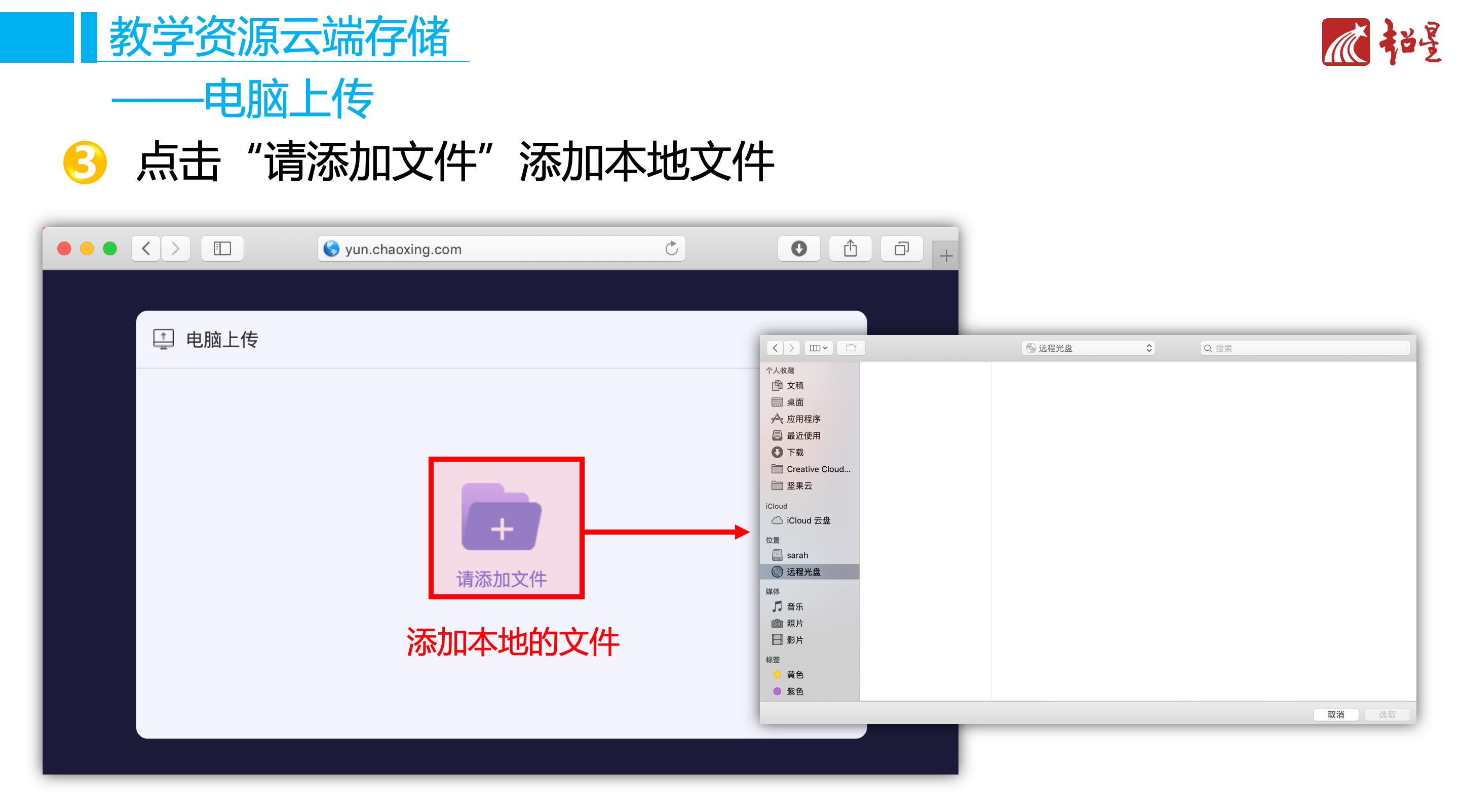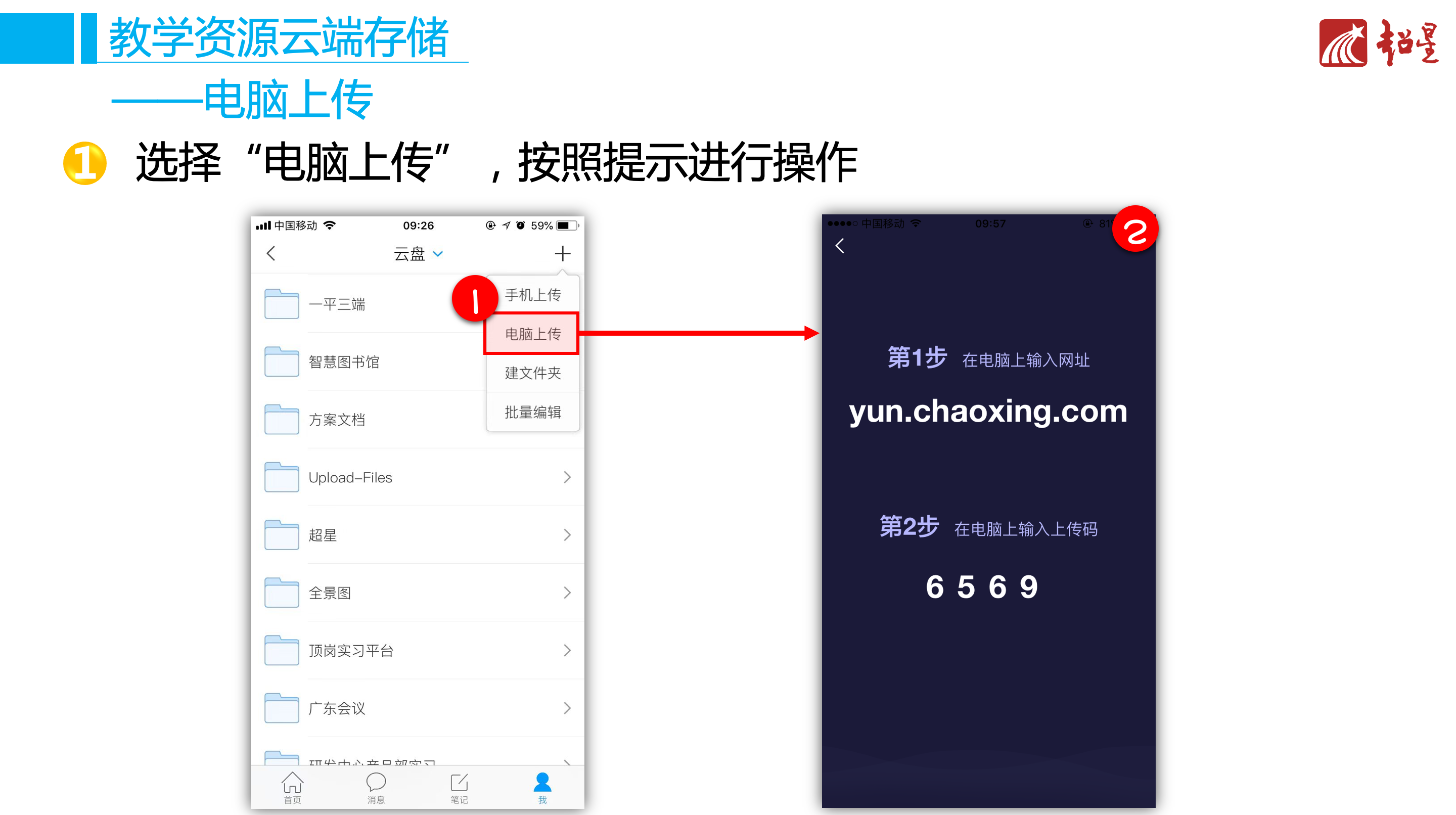 注意:选择电脑上传的资源会自动备份到超星云盘“电脑上传文件”中。