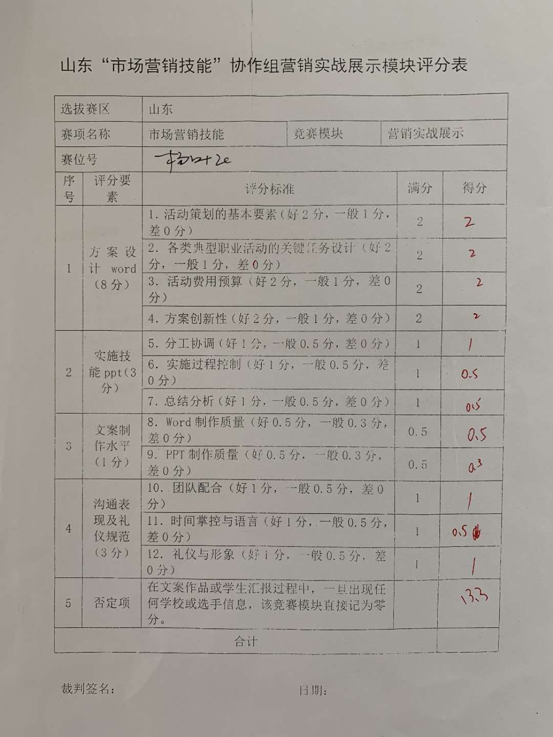 3 评分标准