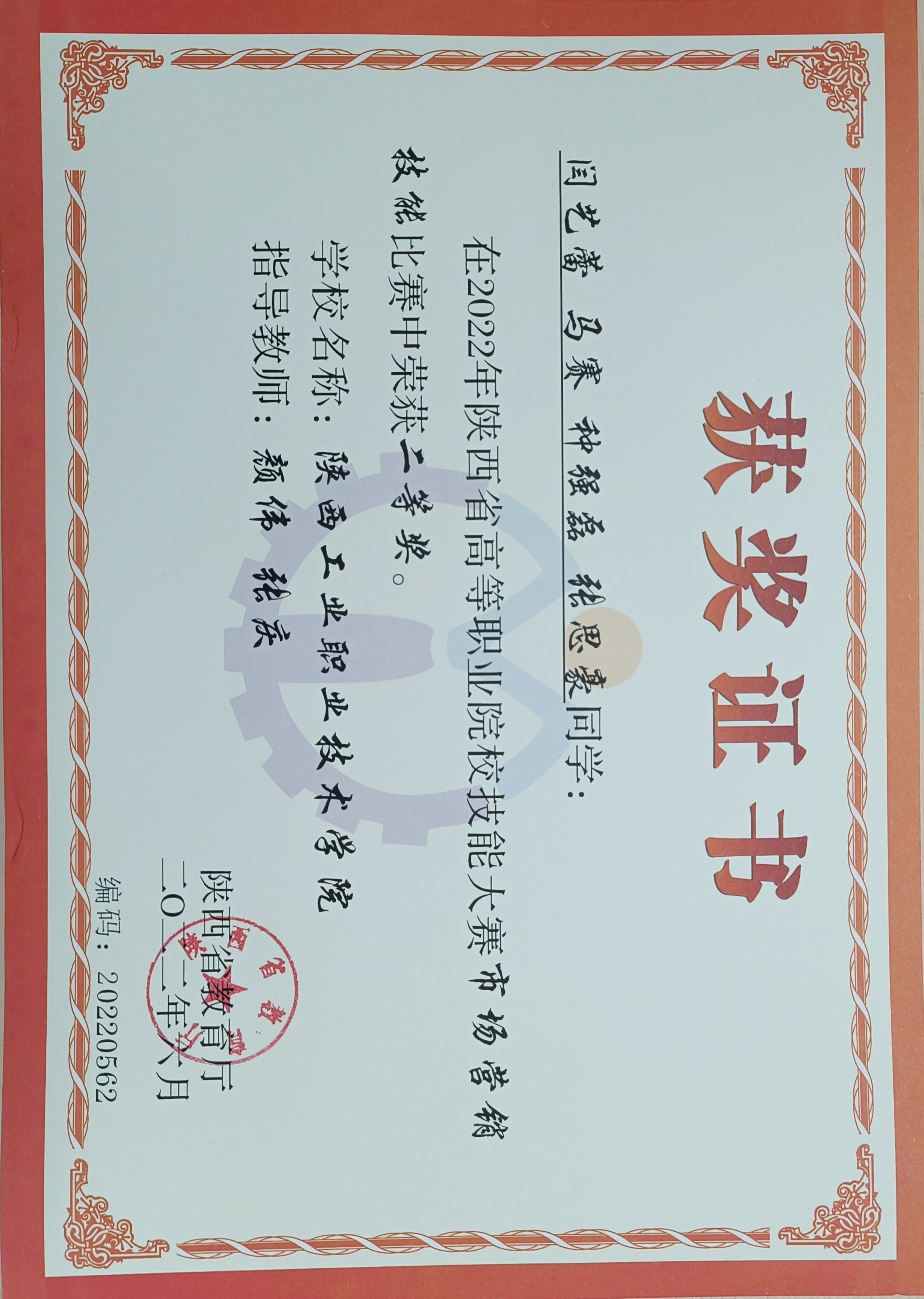 2 获奖证书