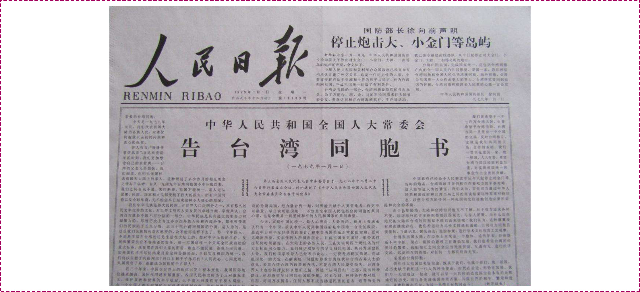 全国人大常委会《告台湾同胞书》开启了大陆对台政策的调整。从中共十一届三中全会到1984年,邓小平同志着眼实现国家完全统一,以超凡的智慧和胆略创造性地提出“一国两制”伟大构想,并首先成功地运用于解决历史遗留的香港、澳门问题。
