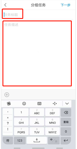 1. 点击分组任务按钮,输入任务标题、任务描述。