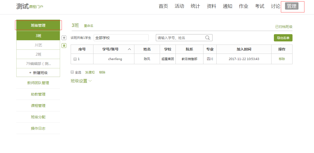 点击左侧标题栏“班级管理”,即可进入班级管理页面。