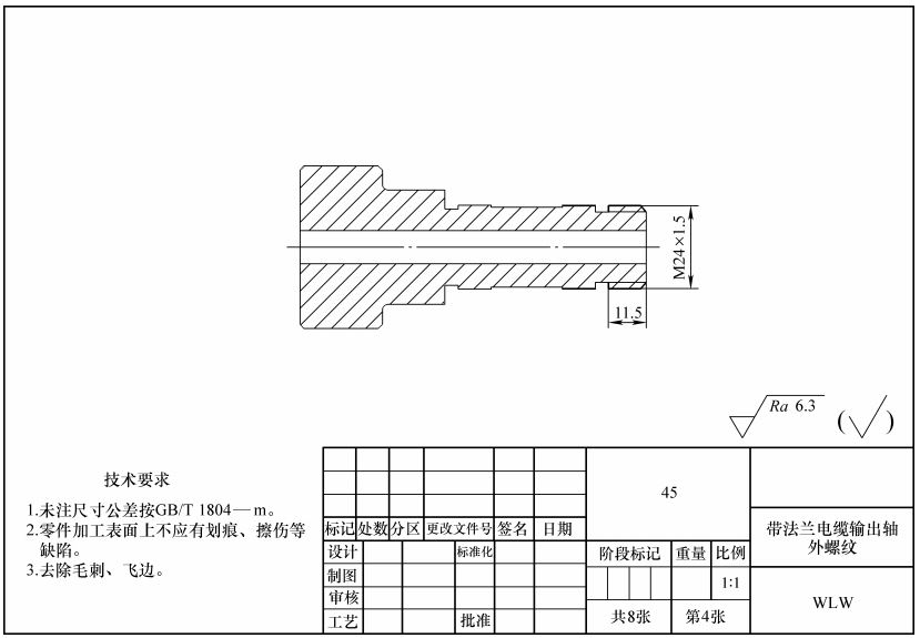 2)带法兰电缆输出轴右端螺纹加工参考程序