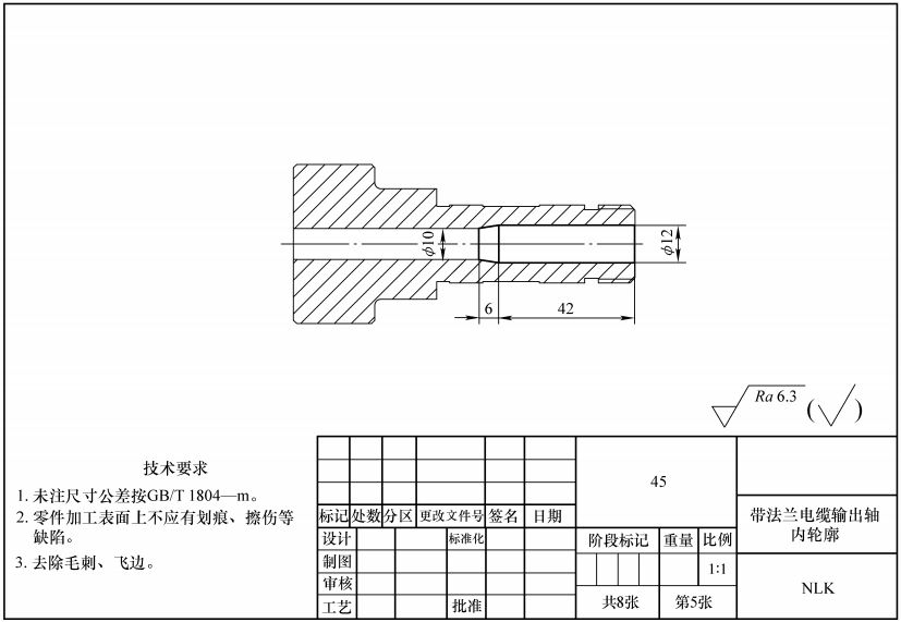 依本任务图纸要求,完成零件内轮廓加工,即图纸中的粗实线轮廓部分,材料为塑料棒或锻件,任务图纸如下: