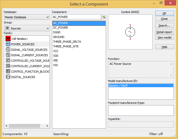 ² 在“Component”(元件)选项里,选择“AC_POWER”(交流电源)。