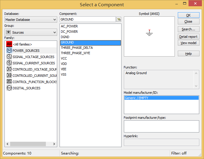 ² 在“Component”(元件)选项里,选择“GROUND”(接地)。