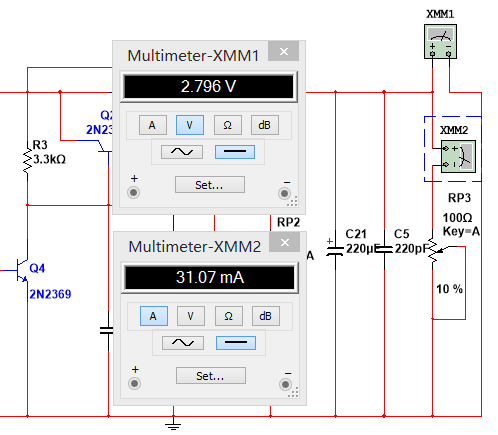 ”(Run)或按F5,运行仿真系统,调整取样电位器RP2,观察输出端万用表读数。