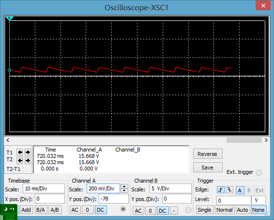 2)当输出电压为15.67V和负载电流为156.679mA时: