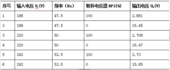 按照要求,调整输入电压及频率和取样电位器,分别对交流源220V±10%,50HZ±5%时进行仿真测试,记录结果如表5.1所示。