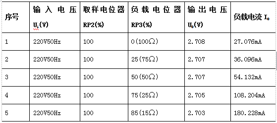 要求:当输入电压为220V50Hz时,输出电流为0~800mA,负载效应:≤5%。