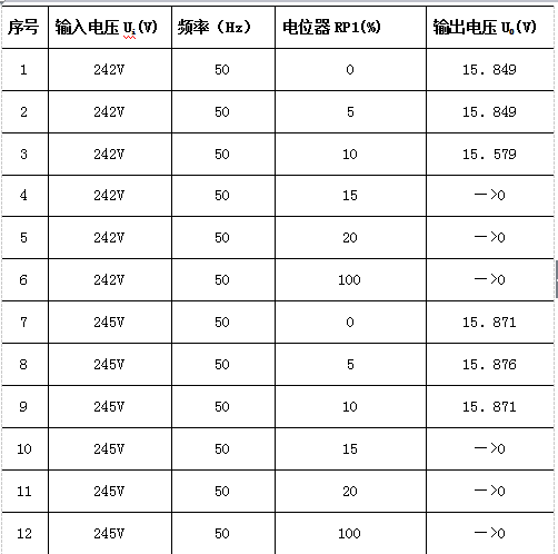 要求:当输入输出电压为:单相(AC)220V±10%、50HZ±5%时,输出电压为DC: +3~+15V,
