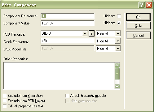 双击元件符号,可弹出元件编辑窗口,在此可以对元件的“Component Reference”、“Component Value”等参数值进行修改。