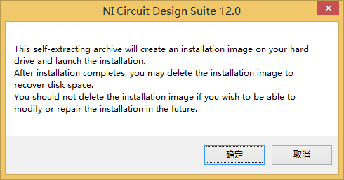 1打开安装文件夹,双击运行NI_Circuit_Design_Suite_12.0.exe文件,弹出如图1.2所示自解压提示对话框。