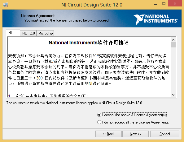 4解压后系统将自动进入安装界面(或手动运行C:\National Instruments Downloads\NI Circuit Design Suite\12.0\autorun.exe),如图1.5所示。