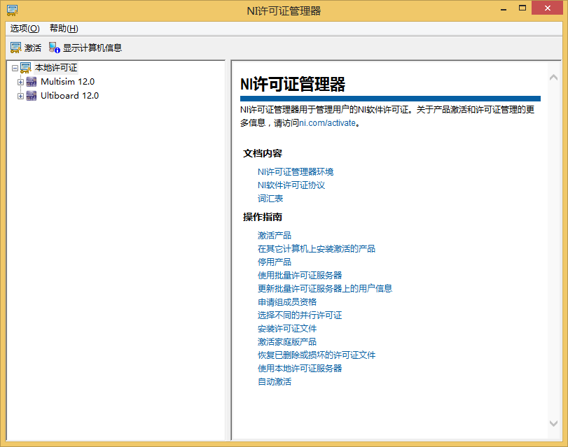 15许可证安装完成后,可在NI许可证管理器左侧栏查看是否成功,如图1.16所示。