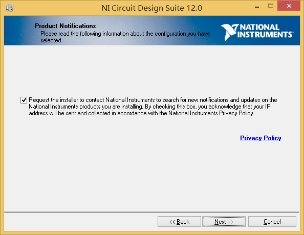 8单击“Next”,出现图1.9所示产品通知对话框,点击“Privacy Policy”,可在线查看该产品相关特点等信息。