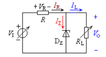 稳压电阻R 的作用: 将稳压二极管电流的变化转换为电压的变化,从而起到调节作用,同时R也是限流电阻。