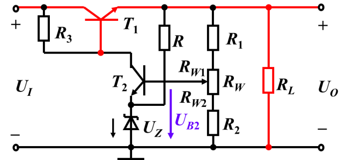 ² 为避免稳压二极管在稳压过程中,反向电流较高情况下,会增大取样放大管的发射极电流,导致可能烧坏三极管,因而增加一个分流电阻R;