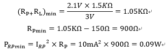 稳压电阻计算:当输入电压最小,负载电流最大时,流过稳压二极管的电流最小。此时不应小于,由此可计算出稳压电阻的最大值,实际选用的稳压电阻应小于最大值。即