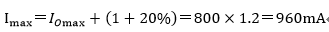 设计指标要求:当超出最大输出电流20%时立即截流保护,即过流保护启动电流: