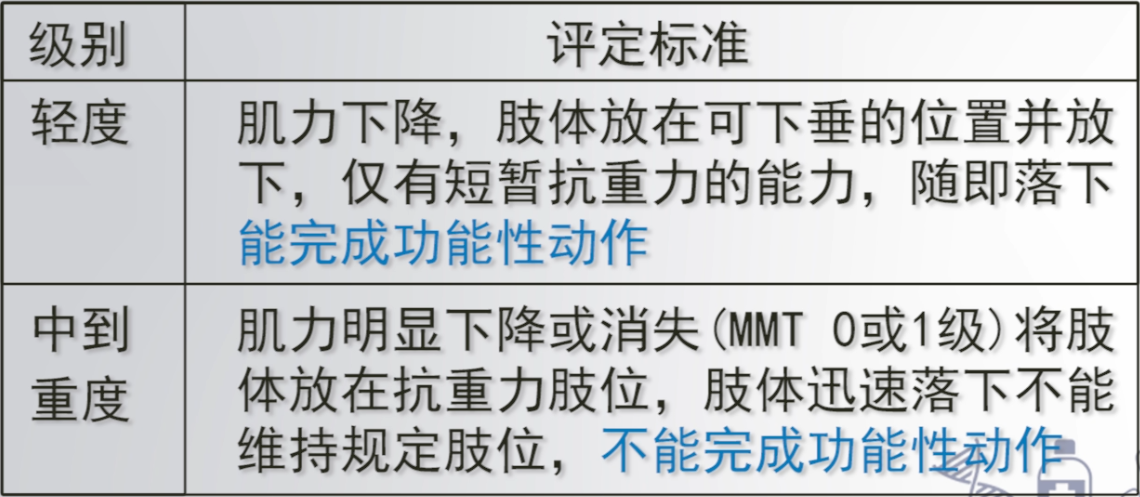 2.具有完全抵抗肢体重力和外来阻力的运动能力。