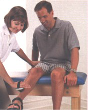 检查方法:检查者一手固定大腿后面,另一手置于踝关节施加阻力