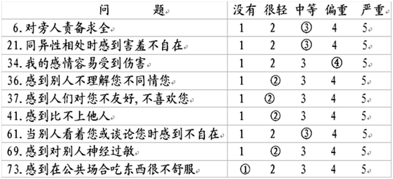 示例:人际敏感因子计分