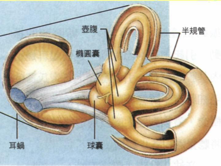 三个半规管感知躯体角加速度运动椭圆囊、球囊(耳石器)感知瞬时直线加速运动及与直线重力加速有关的头部位置改变的信息经第四对颅神经进脑干。