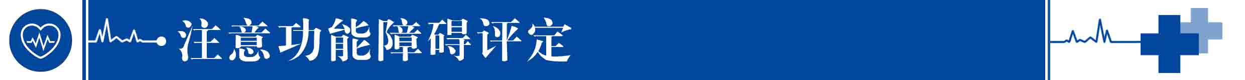 注意障碍评价:反应时检查、注意广度的检查、注意持久性的检查、注意选择性的检查、注意转移的检查以及注意分配的检查。