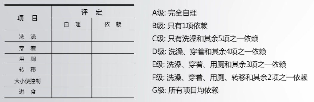 PADL量表:Barthel指数、PULSES量表、Katz指数