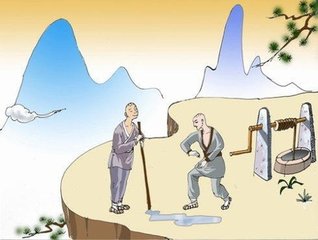 | 住在相邻的两座山上的庙里。这两座山之间有一条溪,于是这两个和尚每天都会在同一时间下山去溪边挑水,久而久之他么变成为了好朋友。就这样时间在每天挑水中不知不觉已经过了五年。突然有一天左边这座山的和尚没有下山挑水,右边那座山的和尚心想:“他大概睡过头了。”便不以为意。哪知道第二天左边这座山的和尚还是没有下山挑水,第三天也一样。过了一个星期还是一样,直到过了一个月右边那座山的和尚终于受不了,他心想:“我的朋友可能生病了,我要过去拜访他,看看能帮上什么忙。”于是他便爬上了左边这座山,去探望他的老朋友。等他到了左边这座山的庙,看到他的老友之后大吃一惊,因为他的老友正在庙前打太极拳,一点也不像一个月没喝水的人。他很好奇地问:“你已经一个月没有下山挑水了,难道你可以不用喝水吗?”左边这座山的和尚说:“来来来,我带你去看。”于是他带着右边那座山的和尚走到庙的后院,指着一口井说:“这五年来,我每天做完功课后都会抽空挖这口井,即使有时很忙,能挖多少就算多少。如今终于让我挖出井水,我就不用再下山挑水,我可以有更多时间练我喜欢的太极拳。” |