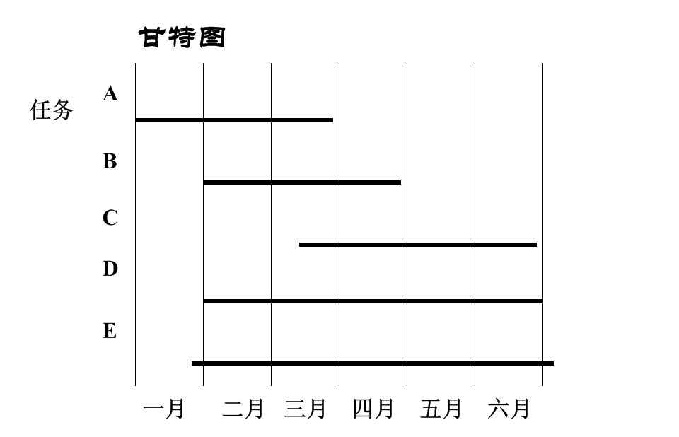甘特图(Gantt chart )又叫横道图、条状图(Bar chart)。它是以图示的方式通过活动列表和时间刻度形象地表示出任何特定项目的活动顺序与持续时间。它是在第一次世界大战时期发明的,以亨利·L·甘特先生的名字命名,他制定了一个完整地用条形图表进度的标志系统。甘特图内在思想简单,基本是一条线条图,横轴表示时间,纵轴表示活动(项目),线条表示在整个期间上计划和实际的活动完成情况。它直观地表明任务计划在什么时候进行,及实际进展与计划要求的对比。管理者由此极为便利地弄清一项任务(项目)还剩下哪些工作要做,并可评估工作进度。