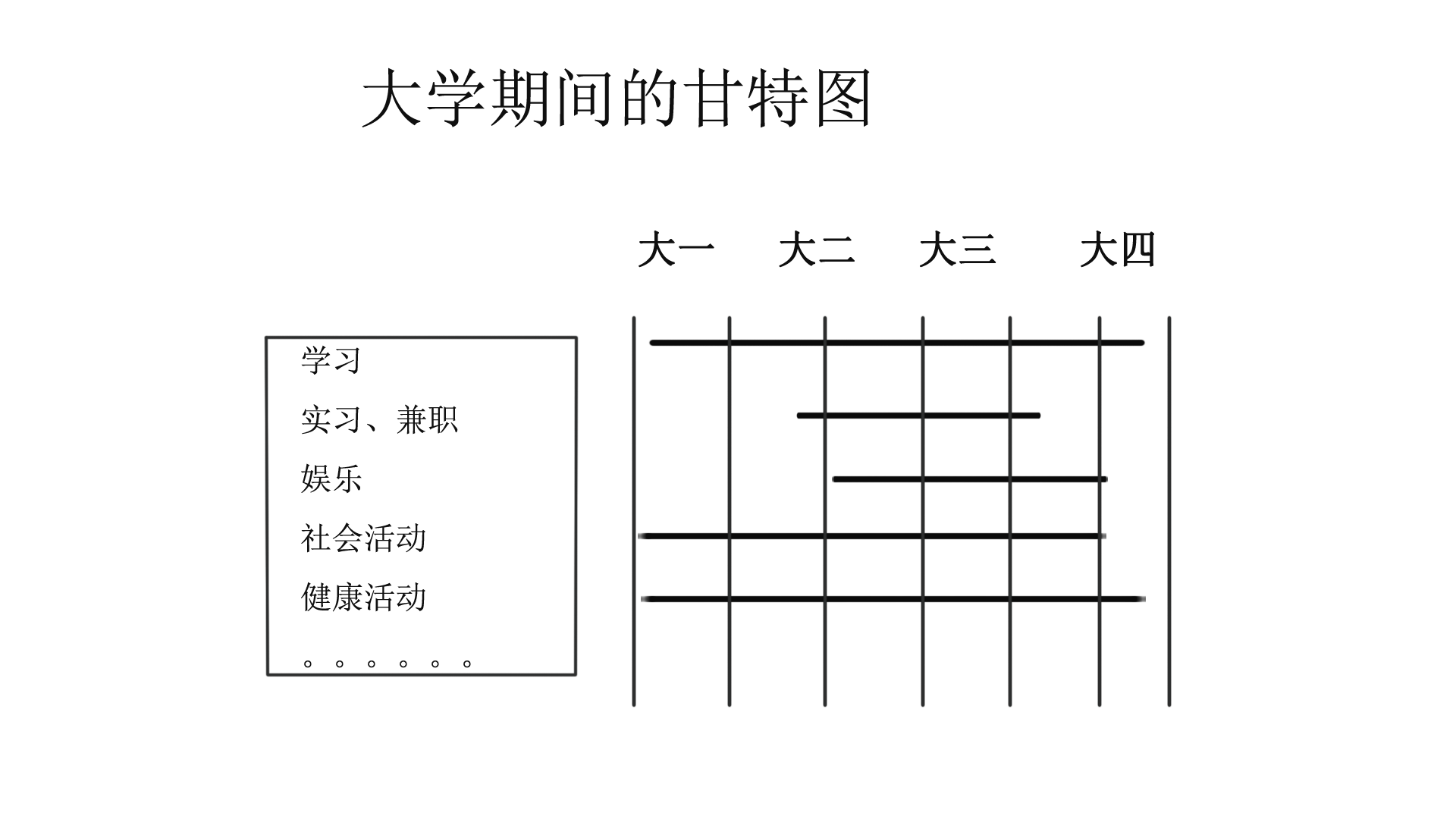 问题三:运用甘特图,对你的学期在重要事情和时间安排,进行一个合理的排序,形成甘特图;