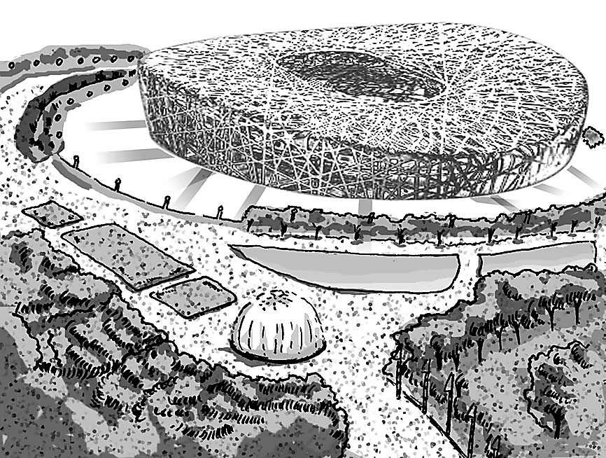 大多数体育场馆,并不十分讲究看台的设计,而“鸟巢”的看台,却被设计得像个边缘高低起伏的“碗”,是环抱着赛场的收拢结构,而且上下层看台之间有一部分交错。这样一来,无论观众坐在“鸟巢”的哪个位置,和比赛场地中心点之间的视线距离都在140米左右。