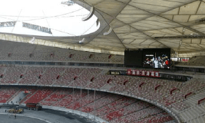 国家体育场“鸟巢”的14700块看台板安装历时8个多月,场内座椅也将于今年开始安装。国家体育场将提供9.1万个观众座位。
