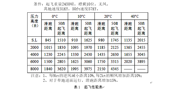表1 起飞性能表