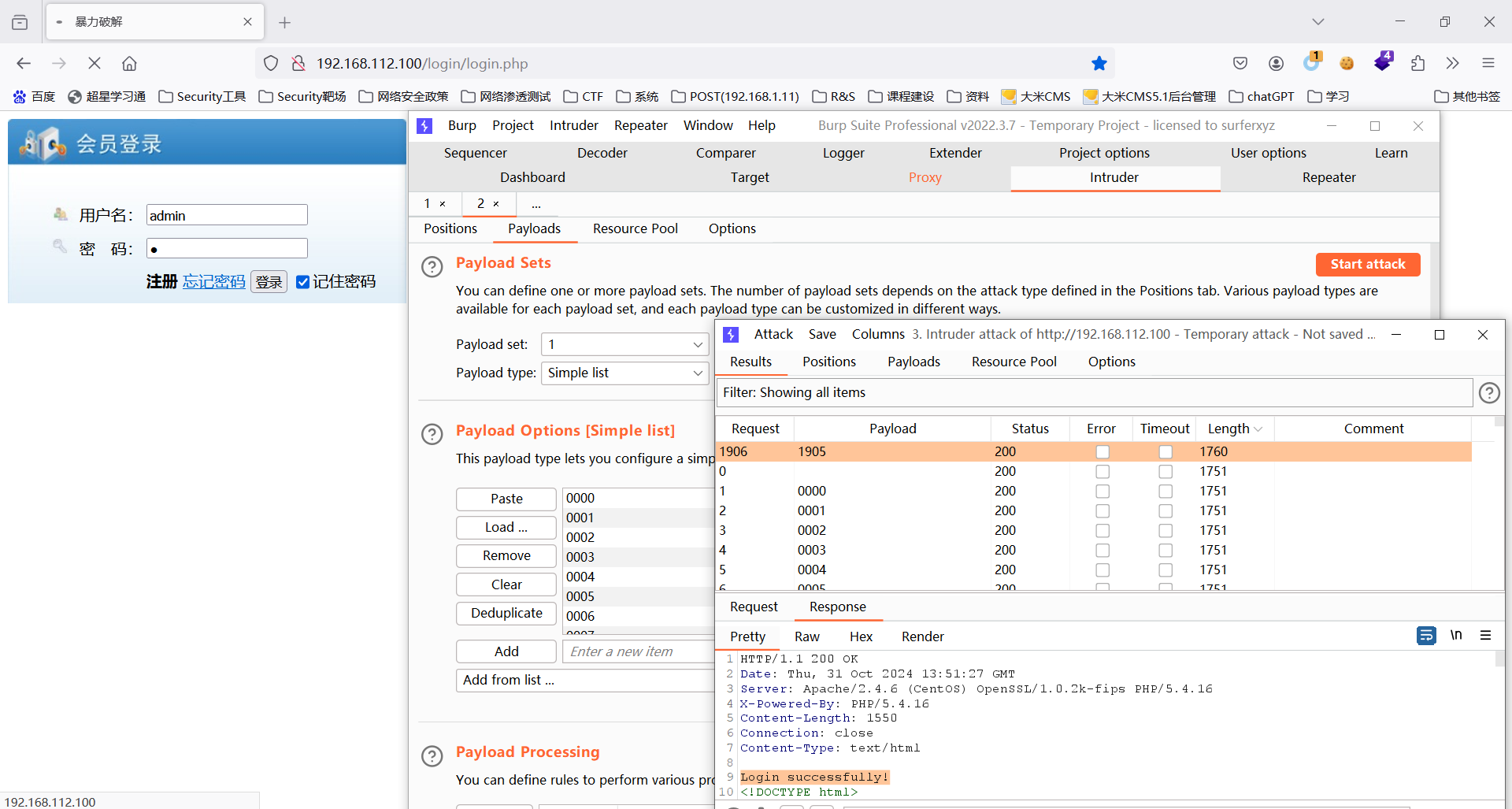 项目2.暴力破解密码:http://192.168.112.100/loginPHP/login.php