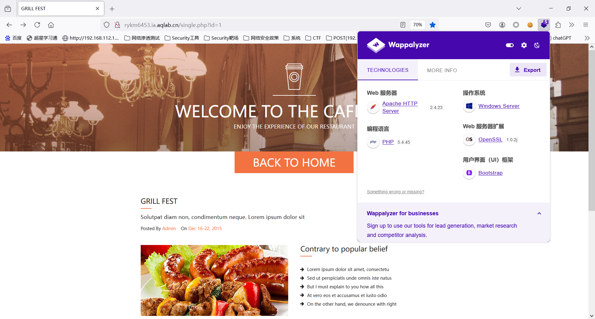 Firefox插件:HackBar V2 2.5.3(作者:chewbaka)、Wapplyzer6.10.74、Proxy SwitchyOmega2.5.10、EditThisCookie2等