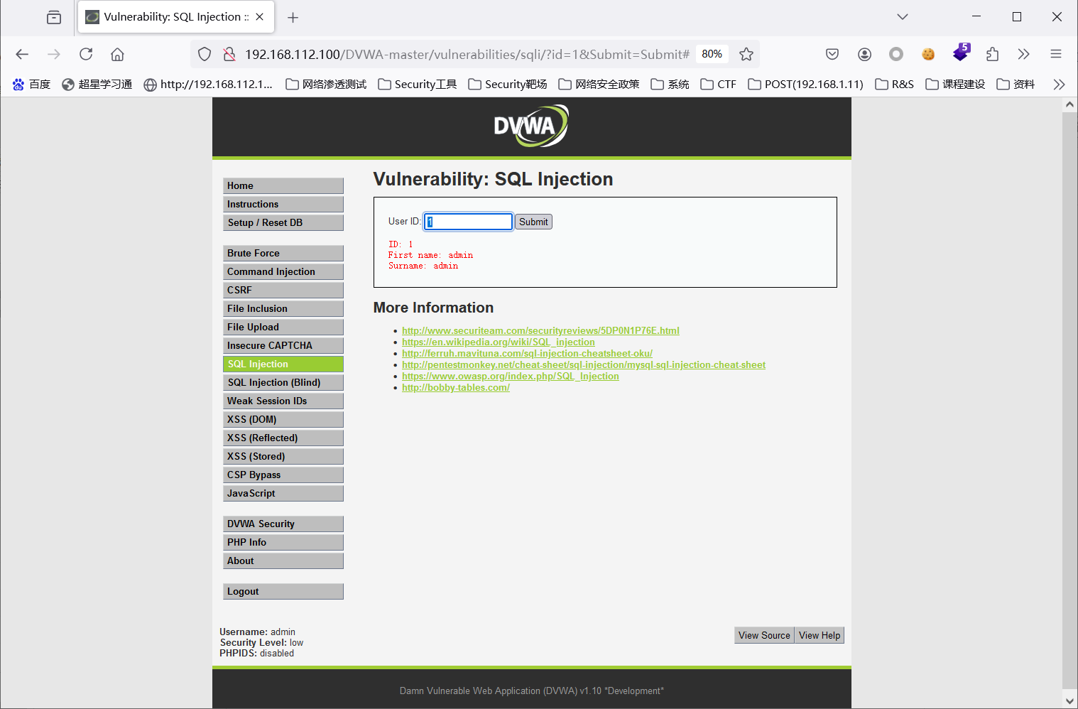 | 3 | DVWA | 127.0.0.1/DVWA/ | GET/POST 有cookie | dvwa | users,guestbook |