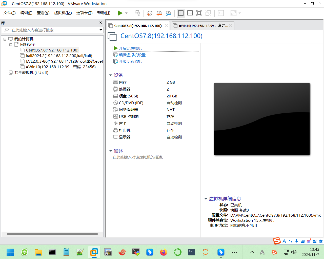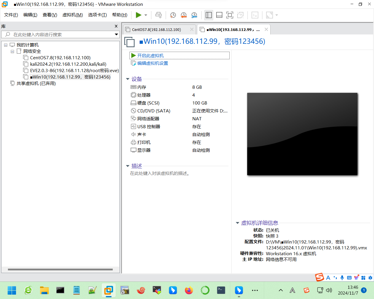 虚拟机:■Win10(192.168.112.99,密码123456)2024-10-03