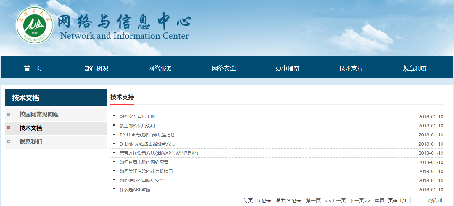 石河子大学网络与信息中心技术文档:https://nc.shzu.edu.cn/jswd/list.htm